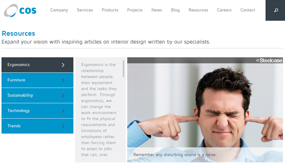 A design company focused on technology in the workspace should be ergonomic and intuitive, reflect a design focus and high-tech experience. The previous site was grossly outdated in terms of layout, navigation, look and feel.